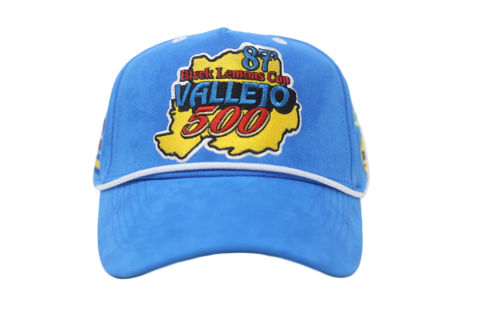 Ignite your passion for speed and local pride with the HomeTown Racing BLVCK SNAPBACK. This exclusive design from BLVCK LEMONS features a unique twist, blending the high-octane world of racing with the cherished landmarks of Vallejo. The familiar logos of NASCAR sponsors are reimagined to highlight the iconic sights around our city, offering a one-of-a-kind style statement. Material is Royal Blue SUEDE 🔥🔥🔥🔥